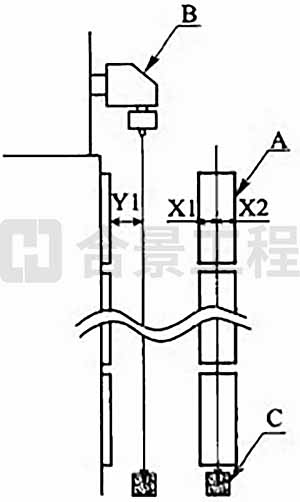 1 调整送棒装置的XY单元获得设备中心线(图8.8.4-1),应使中心线与基准板间距Y1符合设备要求尺寸,中心线处于基准板中心位置,且X1=X2。