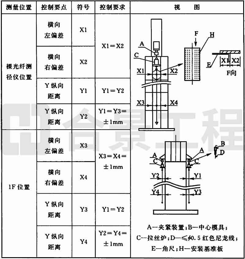 1 拉丝炉中心垂线与设备中心线在拉丝炉上下口检测(图9.4.1),允许偏差应为±0.5mm。