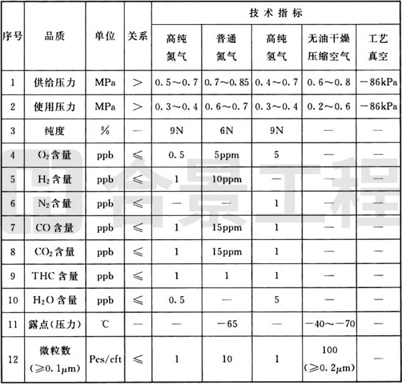 表B.0.1 工艺动力品质(气体)要求