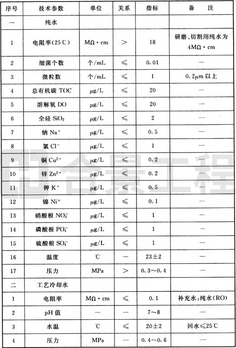 B.0.2 发光二极管生产工艺动力品质(水)要求可按表B.0.2执行。